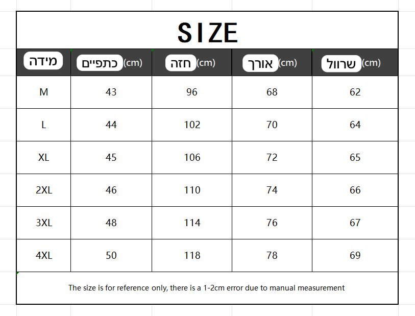 M, L, XL, 2XL, 3XL, 4XL