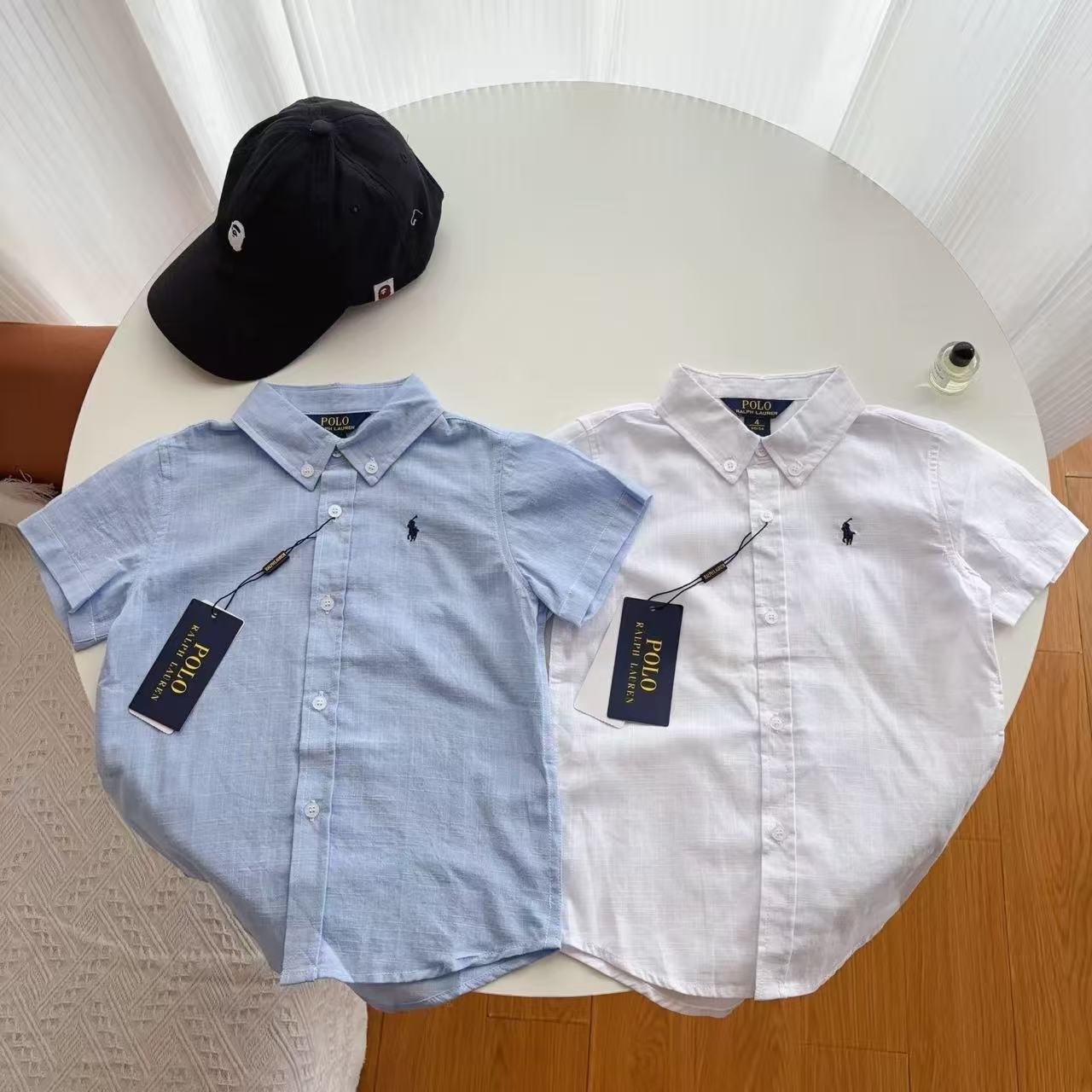 כמות של חולצה מכופתרת קצרה של פולו ראלף לורן לילדים
