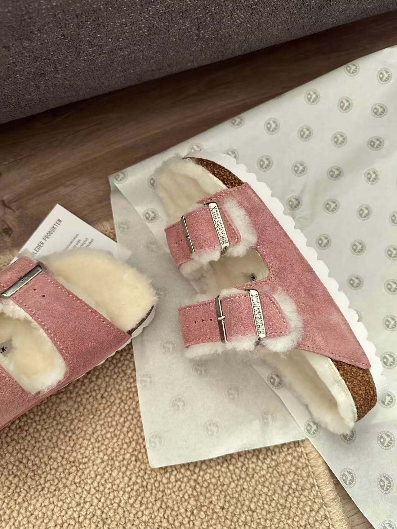 כמות של כפכפים של בירקנשטוק עם פרווה