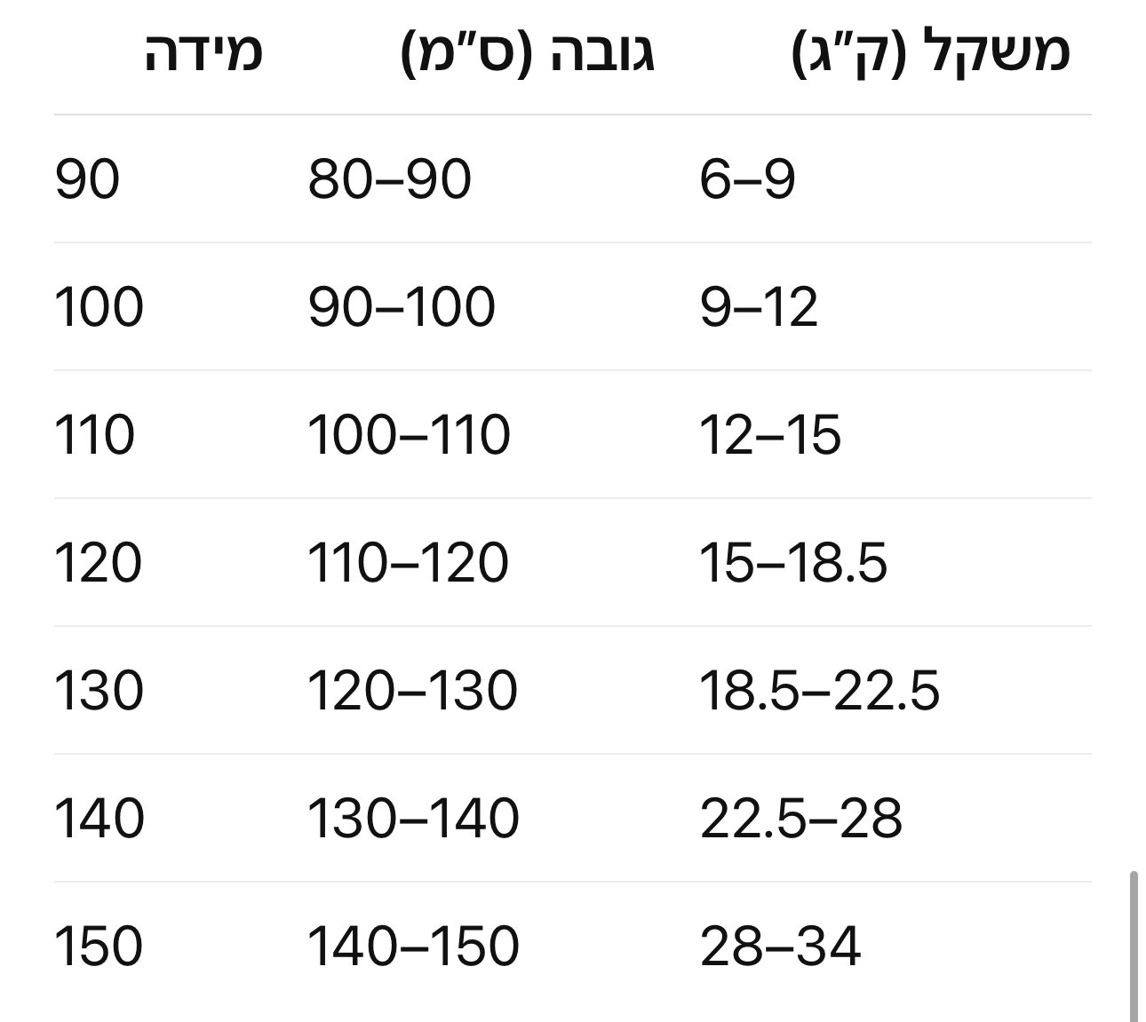 90, 100, 110, 120, 130, 140, 150