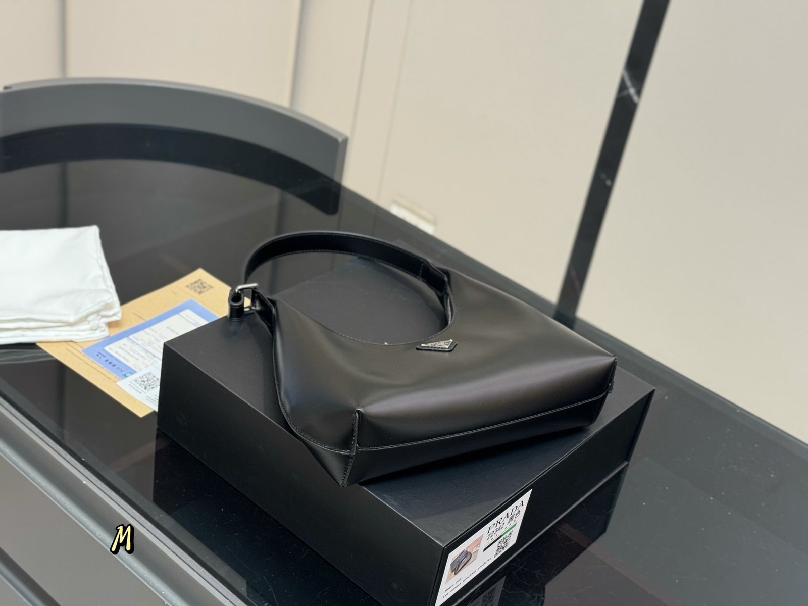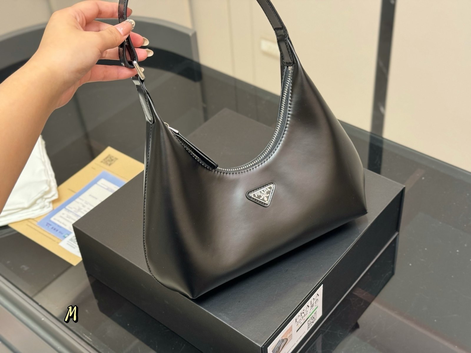 כמות של תיק של פראדה מעור